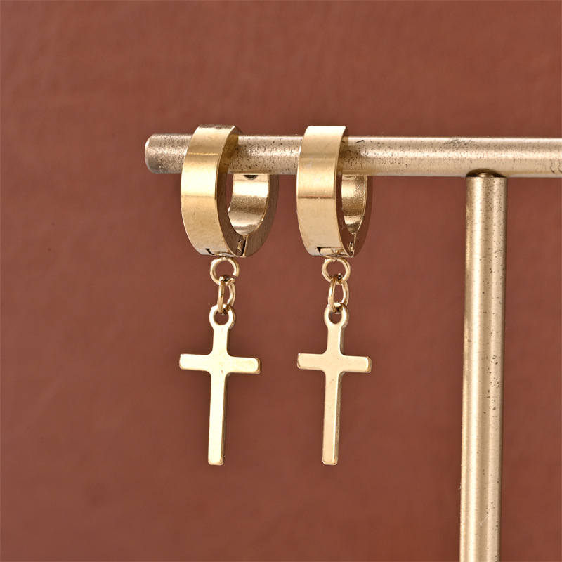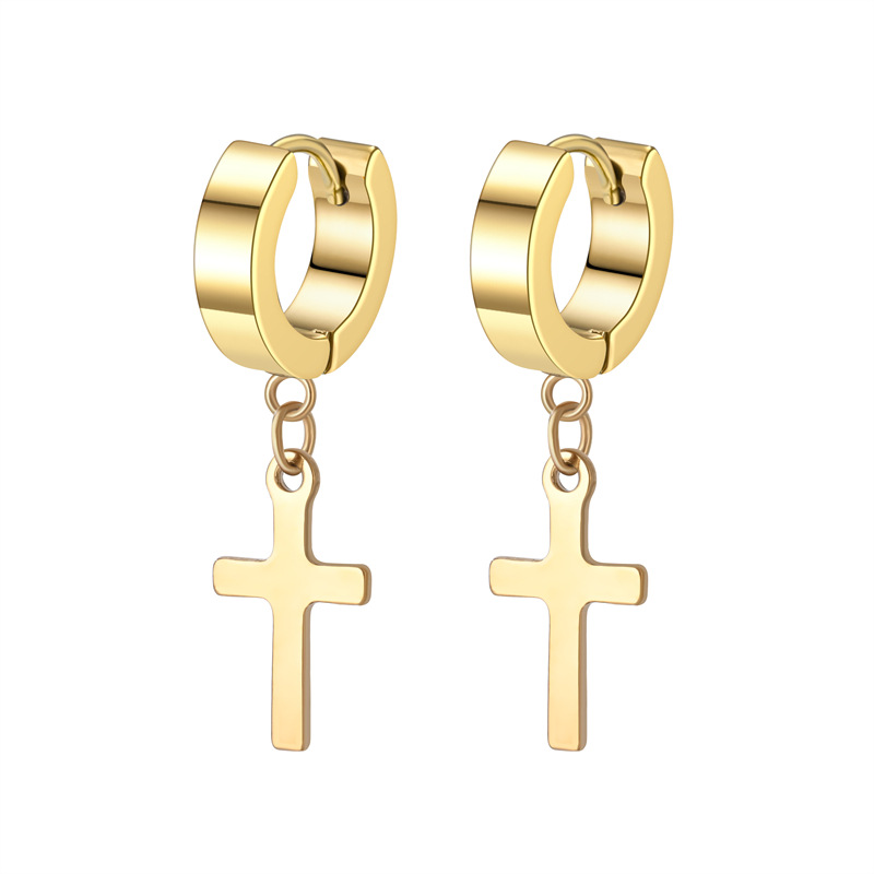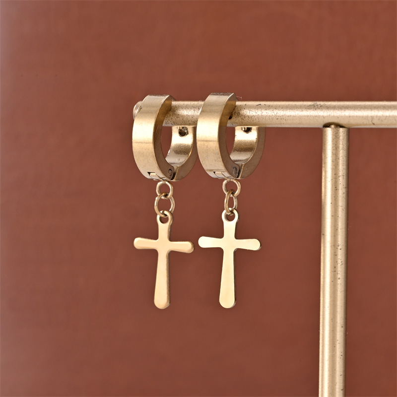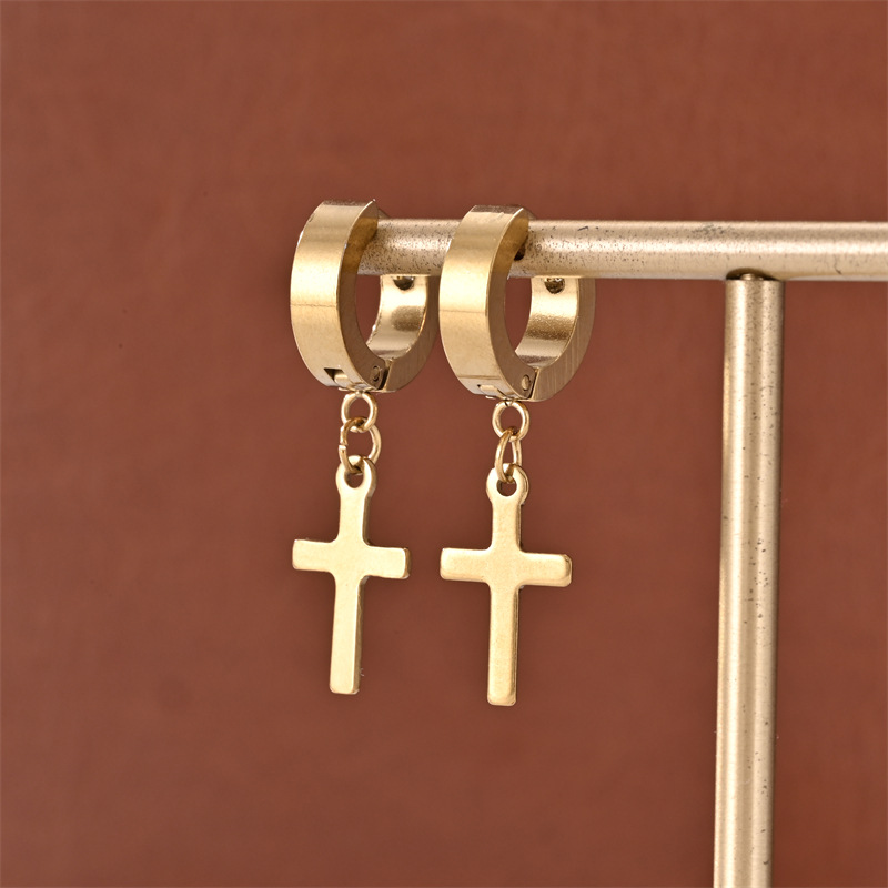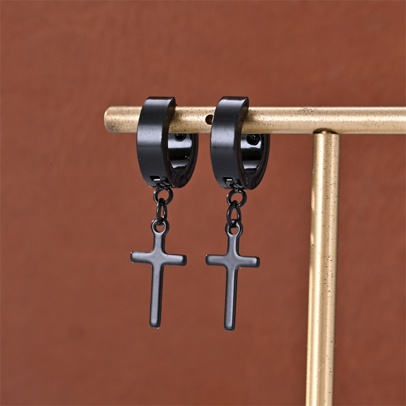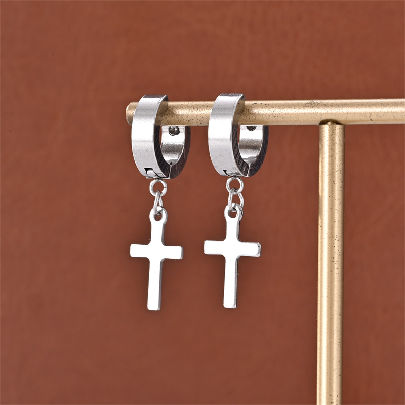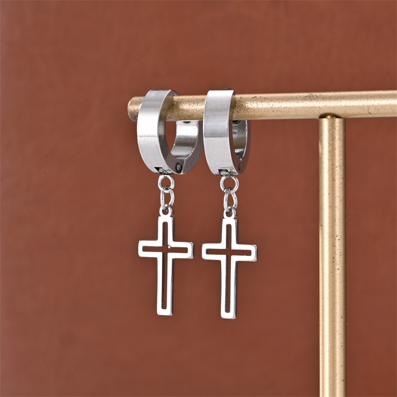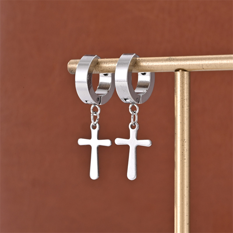 Unisex Fashion Punk Trendy Stainless Steel Cross Shelf Earrings